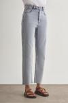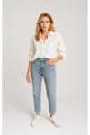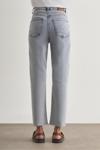 Yüksek bel mom fit kesimi vücudu dengeli bir şekilde sararken, kesik paça detayı ise genç ve dinamik bir hava katar.