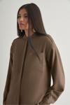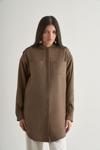 Mizalle Rüzgarlıklı Hakim Yaka Uzun Taş Rengi Gömlek - Image 1