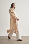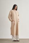 Mizalle Keten Dokulu Verev Cepli Bej Rengi Uzun Tunik