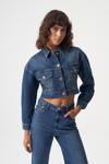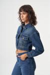 - Modern ve şık tasarımıyla dikkat çeken lacivert crop denim ceket, günlük kullanım için idealdir.