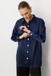 Mizalle Metal Düğmeli Lacivert Saten Tunik Gömlek, modern tasarımı ve kaliteli kumaş dokusuyla öne çıkan özel bir parçadır. Şık detayları sayesinde hem günlük yaşamda hem de özel davetlerde rahatlıkla tercih edilebilir. regular fit kalıbı ve uzun kol tasarımıyla konfor ve şıklığı bir araya getirir.