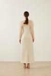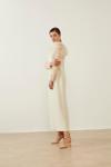 Zarif ve sade tasarımıyla her yaş grubuna hitap eden düz desenli ekru elbise, şıklığınızı ön plana çıkarır