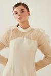 Fırfırlı detayları ile feminen dokunuşlar ekleyerek zarif bir siluet oluşturur