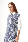 Baskılı deseniyle dikkat çeken bu triko elbise, her yaş grubuna hitap eden şık ve modern bir görünüm sunar