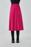 Saten dokusuyla zarif bir görünüm sunan fuşya etek, tüm yaş gruplarına hitap eden a