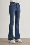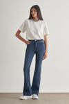 Vücudu saran skinny fit kesimi ve aşağı doğru hafifçe genişleyen flare paçalarıyla dengeli ve zarif bir siluet oluşturur.