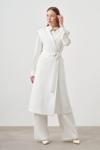 Manken Ölçüleri : Beden : 36, Boy : 179 cm, Göğüs : 86 cm, Bel : 65 cm, Basen : 105 cm, Kg: 60 kg Ürün Ölçüleri : Boy: 125 cm Göğüs: 104 cm Bel: 96 cm Aksesuar : D Toka Astar : Poly Astar Yaka Bilgisi : Ceket Yaka Kalıp : Rahat Kalıp Kumaş: %88 Polyester %12 Elastan Ürün Ağırlığı: 660 gr Yıkama Talimatı : Kuru Temizleme
