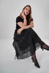 Düz deseniyle sade ve zamansız bir tarz yaratırken, tül detaylarıyla göz alıcı bir dokunuş ekler