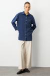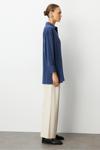 Mizalle Yan Düğmeli İndigo Mavi Cupro Tunik, modern tasarımı ve kaliteli kumaş dokusuyla öne çıkan özel bir parçadır.