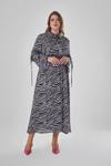 Manken ölçüleri :Beden : 36, boy : 179 cm, göğüs : 84 cm, bel : 62 cm, basen : 92 cm Ürün ölçüleri : Boy:135 Göğüs:104 Bel:80 Kol boyu:55 Kumaş:%100 polyester Kalıp:Regular fit Kullanım alanı :Günlük