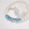 Bu bileklik, gerçek inci ve mavi kuvars taşlarının uyumlu birleşimiyle tasarlanmıştır.