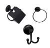 Mk Yapı Market MK Yapışkanlı Siyah Üçlü Banyo Aksesuar Seti - Yuvarlak Havluluk - Banyo Askısı - Kapaklı Tuvalet Kağıtlık