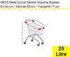 MK25 metal çocuk market arabası 25 litre olarak üretilmektedir. Sap kısımları standart olarak kırmızı ve turuncu renklerde sunulan MK25 metal çocuk market arabası, özel istek doğrultusunda farklı renk ve ölçülerde üretilebilmektedir. MK25 metal çocuk market arabasının sap kısımlarını özel istek doğrultusunda firma mağaza logonuz ile baskılı alma seçeneği de bulunmaktadır.