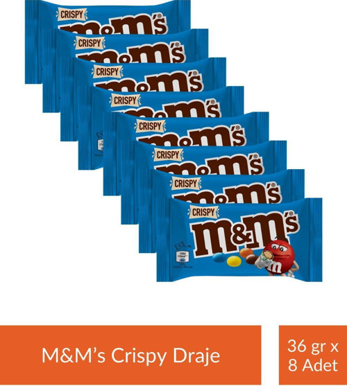 Rengârenk kaplaması ve içindeki hafif çıtır dokusuyla M&M’S Crispy, atıştırmalık keyfini bambaşka bir seviyeye çıkarıyor. 36 gramlık pratik paketler, hem çantada hem de ofiste kolayca taşıyabileceğiniz şekilde tasarlandı. Bu avantajlı 8'li paket ise hem günlük enerji ihtiyacınızı karşılamak hem de sevdiklerinizle paylaşmak için ideal.