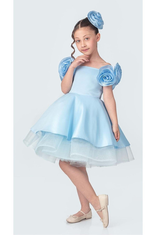 Mnk Baby&Kids Fanari Krep Saten Gren Destekli Kız Abiye M00735 Mavi