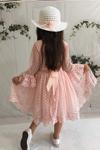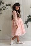 Krem Şapkalı Dantelli Kız Çocuk Elbise Somon