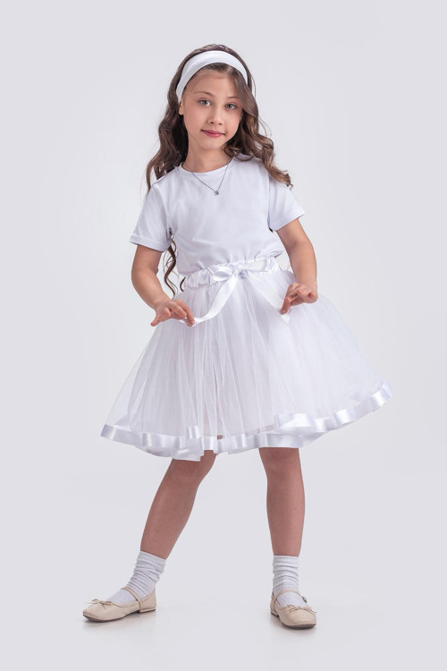 Saten Şeritli Tütü Kız Çocuk Etek M00728 BEYAZ