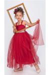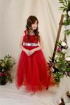 Sırt kısmı gipeli kol askısı tül ile destekli, bel pul payet işlemeli kız çocuk özel gün , cemiyet , düğün , nişan , balo , doğum günü , mezuniyet vb.