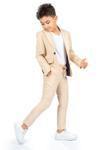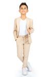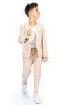 Spor Çocuk Ceket, Tişört , Jogger Pantolonlu Takım Mnk5682 Bej