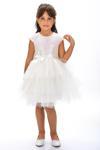 Mnk Kız Çocuk Pullu Tüllü Parti Elbisesi BEYAZ