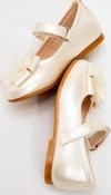 Rakerplus Hakiki Deri Beyaz Fiyonklu Cırtlı Kız Çocuk Babet Ayakkabı
