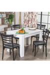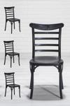 4 adet mutfak sandalyesi siyah renkte tasarlanmış, şıklığı ve modern görünümü ile dikkat çeker. Siyah renk, çeşitli dekorasyon tarzlarına uyum sağlayarak mekana sofistike bir atmosfer katar.