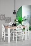 Beyaz sandalyeleriyle modern ve şık bir görünüm sunar, mutfak dekorasyonunuza aydınlık bir dokunuş katar