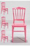 4’lü olarak kullanıma sunulan ve pembe renk ile öne çıkarılan sandalye modeli kullanım alanlarının atmosferini değiştirir.