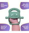 Sevimli tasarım, uzun süreli kullanım, farklı dokudaki kaşıma yüzeyleri ve çoklu tutma alanları ile bebeğin hassas dişlerini ve diş etlerini yatıştırarak huzurlu ve etkili bir rahatlama sağlar.