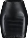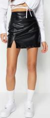 Ersefa Moda A-line Gündüz Gece Mini Boy Yırtmaç Detaylı Vücuda Oturan Yüksek Bel Suni Deri Mini Etek
