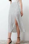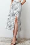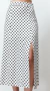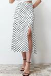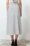 Ersefa Moda A-line Puantiyeli Desen Günlük Midi Boy Puantiyeli Yırtmaç Detaylı Viskon Midi Dokuma Etek
