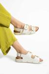 - Zarif tasarımıyla dikkat çeken Mia beyaz spor altın tokalı sandalet, genç ve dinamik stil sahibi kadınların tercihi.
