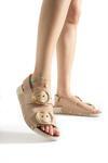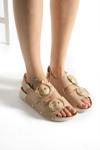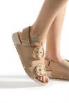 - Bej rengin zarif uyumunu yansıtan Mia Bej Spor Altın Tokalı Kadın Sandalet, yaz aylarının vazgeçilmezi olacak.
