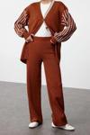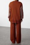 Ersefa Moda Animal V Yaka Balon Kol Günlük Tarçın Desenli Balon Kollu Triko Hırka Pantolon Alt-Üst Takım