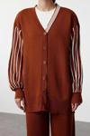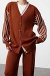 Moda Animal V Yaka Balon Kol Günlük Tarçın Desenli Balon Kollu Triko Hırka Pantolon Alt-Üst Takım ürünümüz, hem şıklığı hem de rahatlığı bir arada sunar.