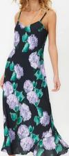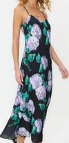 Moda Askılı V Yaka Maxi Elbise çok Renkli çiçek Desenli Düz Kesim Askılı Midi Saten Dokuma Elbise