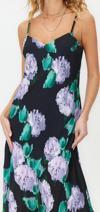 Ersefa Moda Askılı V Yaka Maxi Elbise Çok Renkli Çiçek Desenli Düz Kesim Askılı Midi Saten Dokuma Elbise