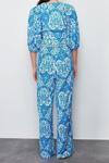 Moda Balon Kol Baskılı V Yaka Balon Kol Relaxed Rahat Kesim Dokulu Esnek Örme Alt-Üst Takım ürünümüz, hem şıklığı hem de rahatlığı bir arada sunar.