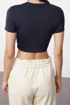 Moda Bisiklet Yaka Örme Fit Düz Desen Sportswear Super Crop Kısa Kol Bluz ürünümüz, hem şıklığı hem de rahatlığı bir arada sunar