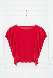 Ürün Özellikleri şu şekildedir: Desen:Düz | Yaka Tipi:Bisiklet Yaka | Kol Tipi:Büzgülü/Fırfırlı Kol | Kalıp:Slim | Kumaş Tipi:Örme | Renk:Kırmızı | Cep:Cepsiz | Ürün Detayı:Fırfır | Ürün Tipi:Düz | Boy:Crop | Kol Boyu:Kısa | Ortam:Gündüz / Gece | Siluet:Basic | Dokuma Tipi:Sandy | Persona:Smart | Sürdürülebilirlik Detayı:Hayır | Materyal Bileşeni:96% Polyester, ,4% Elastan | Yıkama Talimatı:T10 | Yaş:Tüm Yaş Grupları |