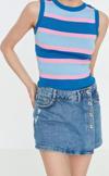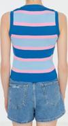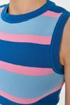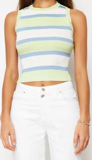 Moda Bisiklet Yaka Triko Slim Çizgili Desen Casual Günlük Crop Kolsuz Bluz ürünümüz, hem şıklığı hem de rahatlığı bir arada sunar