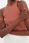 Moda Bisiklet Yaka Triko Slim Düz Desen Casual Günlük Regular Askılı Kol Bluz