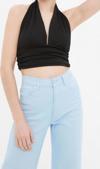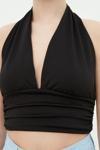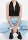 Moda Boyundan Bağlamalı Örme Slim Düz Desen Casual Günlük Crop Kolsuz Bluz ürünümüz, hem şıklığı hem de rahatlığı bir arada sunar