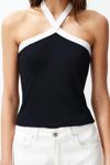 Moda Boyundan Bağlamalı Örme Slim Düz Desen Casual Günlük Regular Kolsuz Bluz ürünümüz, hem şıklığı hem de rahatlığı bir arada sunar