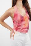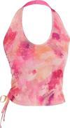 Moda Boyundan Bağlamalı Örme Slim Soyut Desen Casual Günlük Crop Kolsuz Bluz ürünümüz, hem şıklığı hem de rahatlığı bir arada sunar