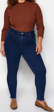 Ersefa Moda Büyük Beden Dik Yaka Örme Fit Düz Desen Casual Günlük Regular Uzun Kol Bluz