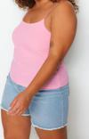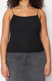 Moda Büyük Beden Kare Yaka Örme Fit Düz Desen Casual Günlük Crop Askılı Kol Bluz ürünümüz, hem şıklığı hem de rahatlığı bir arada sunar