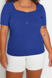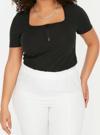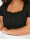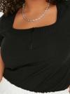 Moda Büyük Beden Kare Yaka Örme Fit Düz Desen Casual Günlük Crop Kısa Kol Bluz ürünümüz, hem şıklığı hem de rahatlığı bir arada sunar