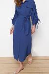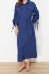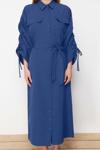Ersefa Moda Casual Günlük Terrycotton Dokuma Gömlek Yaka Uzun Kol Gömlek Elbise Maxi Boy Tesettür Elbise