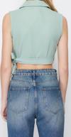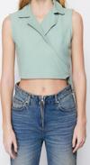 Moda Ceket Yaka Dokuma Fit Düz Desen Şık gece Crop Kolsuz Bluz ürünümüz, hem şıklığı hem de rahatlığı bir arada sunar
